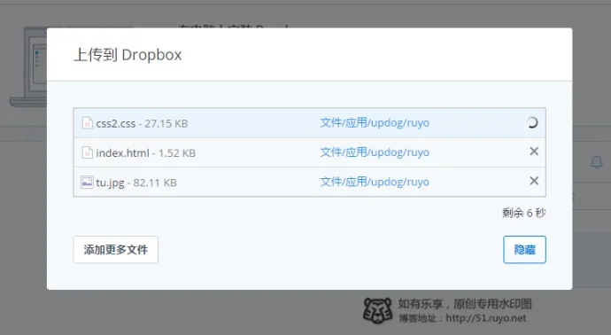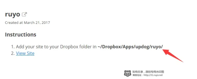 4) 创建成功后,需要将网站的文件上传到Dropbox指定位置~