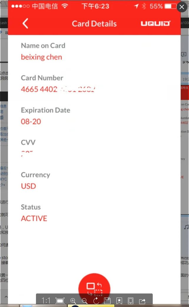 买完卡以后,在 网站菜单 My Uquid Card 可以看到所有购买的卡,我把三个币种的卡各买了一张,结果都是466544开头的卡,如图: