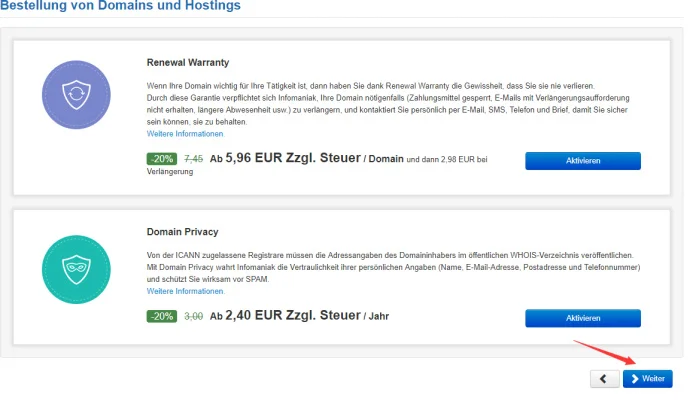 3)搜索一个要注册的域名,然后点击【Weiter】