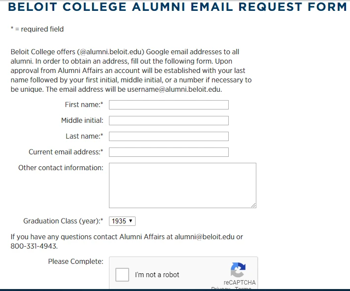 申请地址: https://www.beloit.edu/alumni/network/association/benefits/emailrequest/