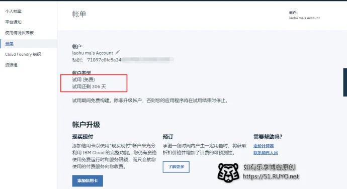 想使用免费的集群容器,需要将IBM账户升级一下或者添加一个试用才行!