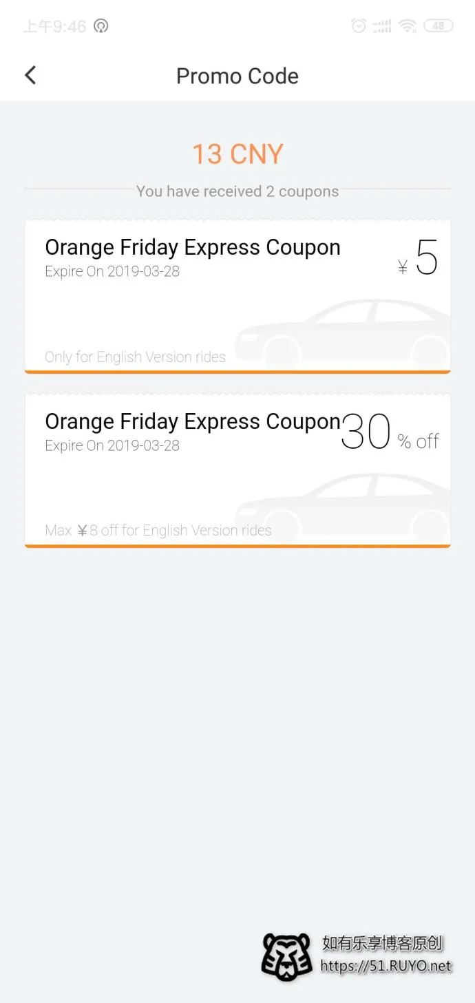一张5元 和一张 30%折扣的!优惠最大金额是13元!