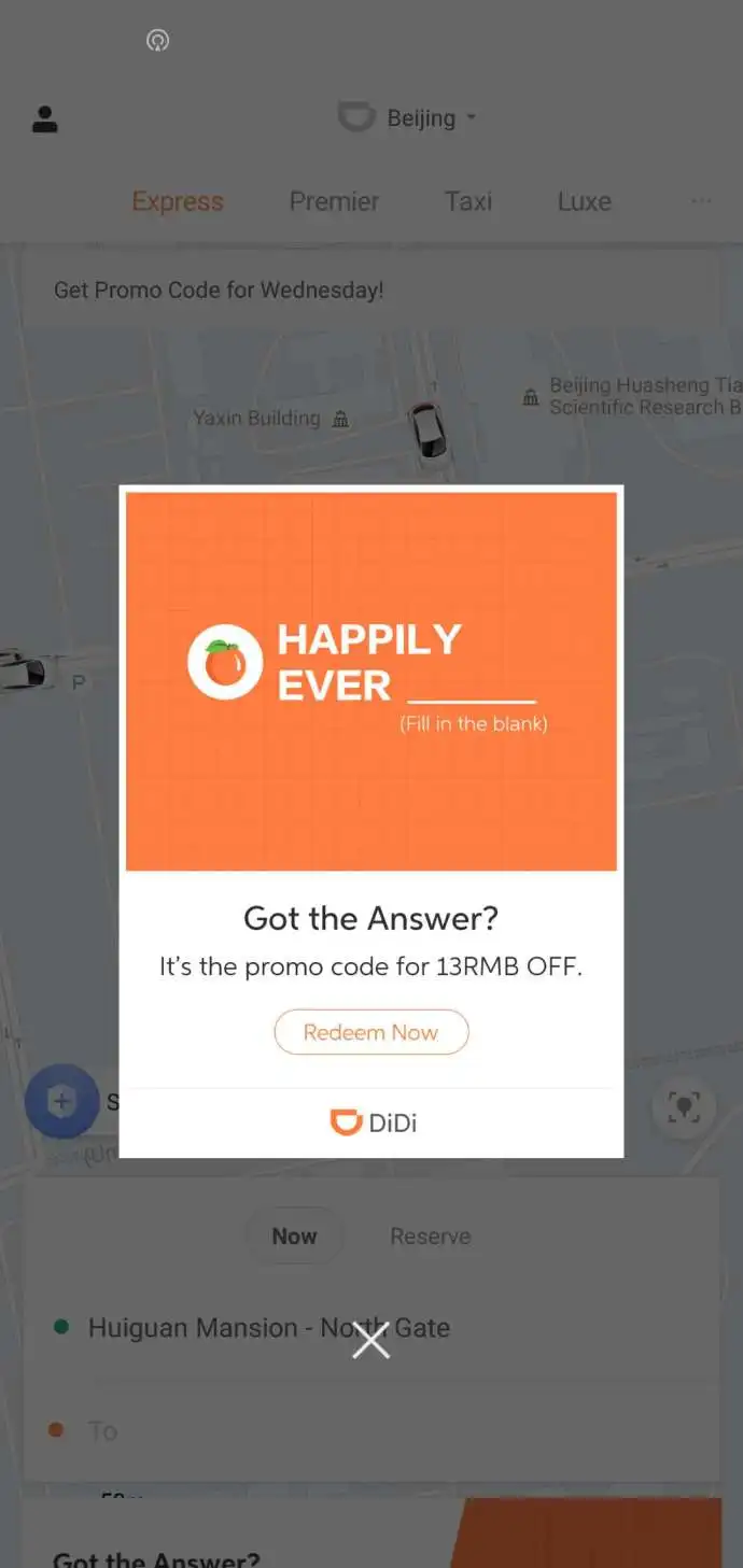 第二步:点击 Express, 上方可见 Get Promo Code for Wednesday , 可见弹窗,填写答案即可领取代金券!