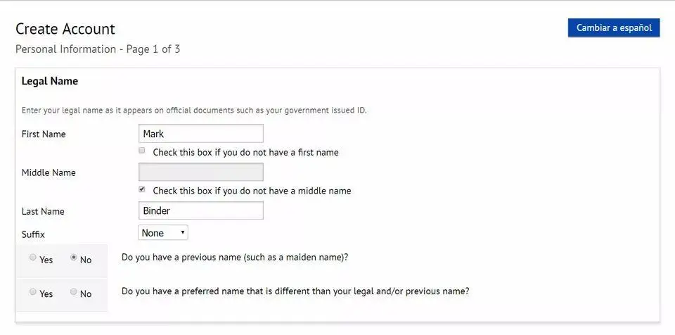 2)填入虚拟的姓名(注意老外的姓名格式 名.中间名.姓)。其他都可以选No。