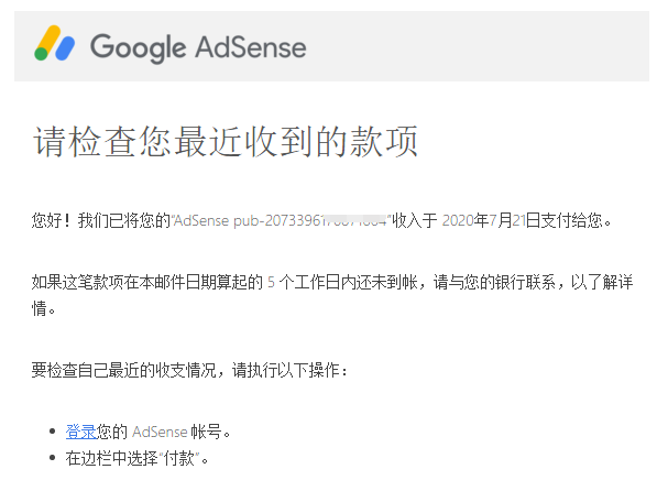 国内时间每个月21日下午,Google Adsense 统一发放广告费用!