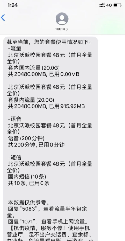 套餐短信:短信彩信:10条,超出后0.1元/条