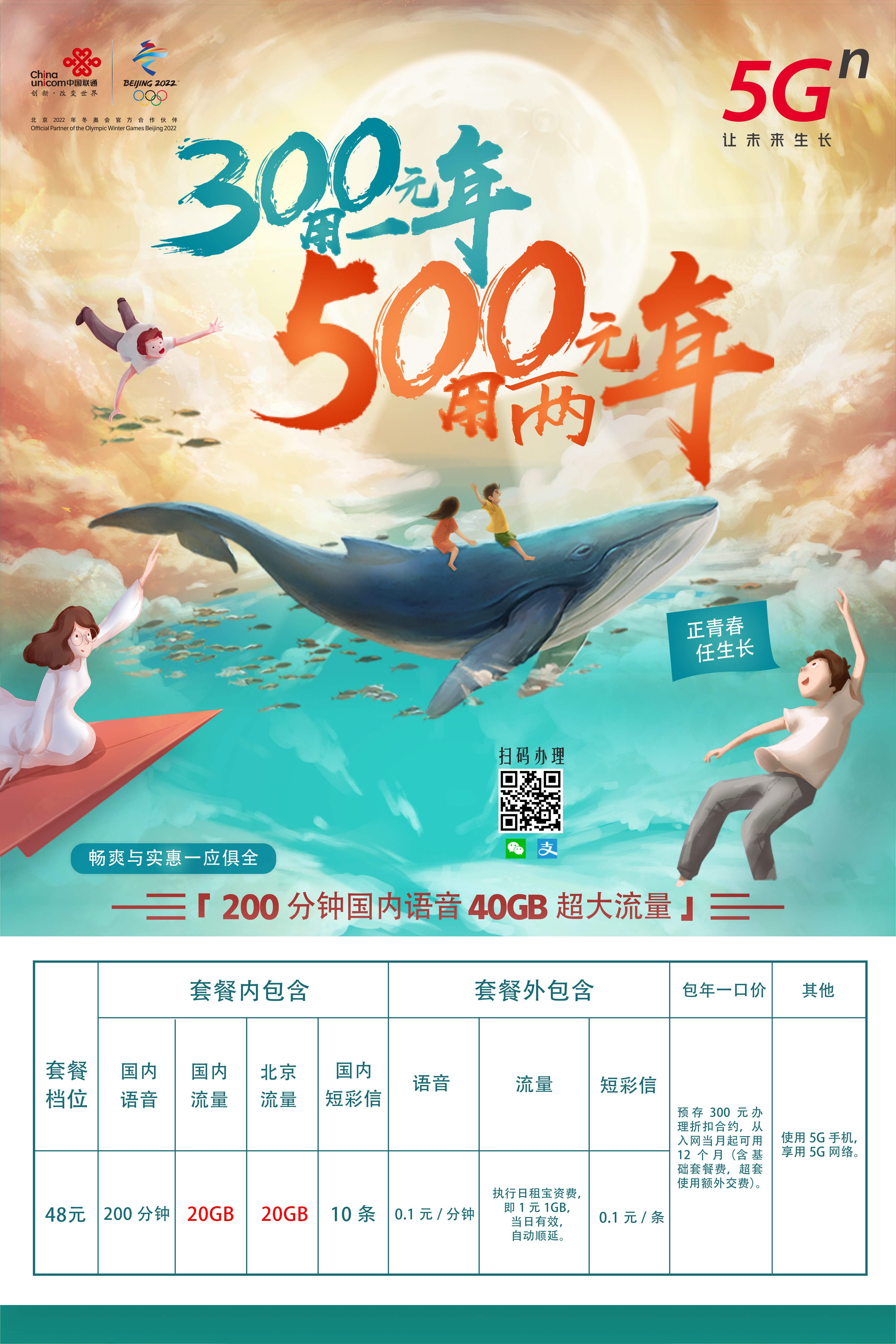 套餐费用:300元一年、500元两年,折合20.8元/月