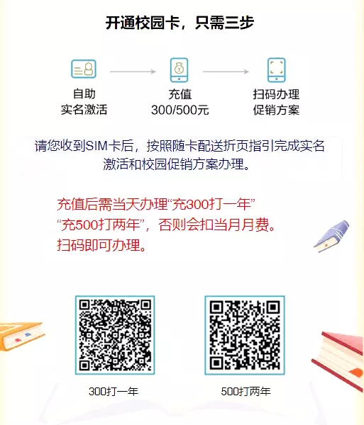 扫描本文上方的套餐办理二维码进行校园套餐在线自助办理。(不参与校园套餐办理的将会收取高昂月租费哦)