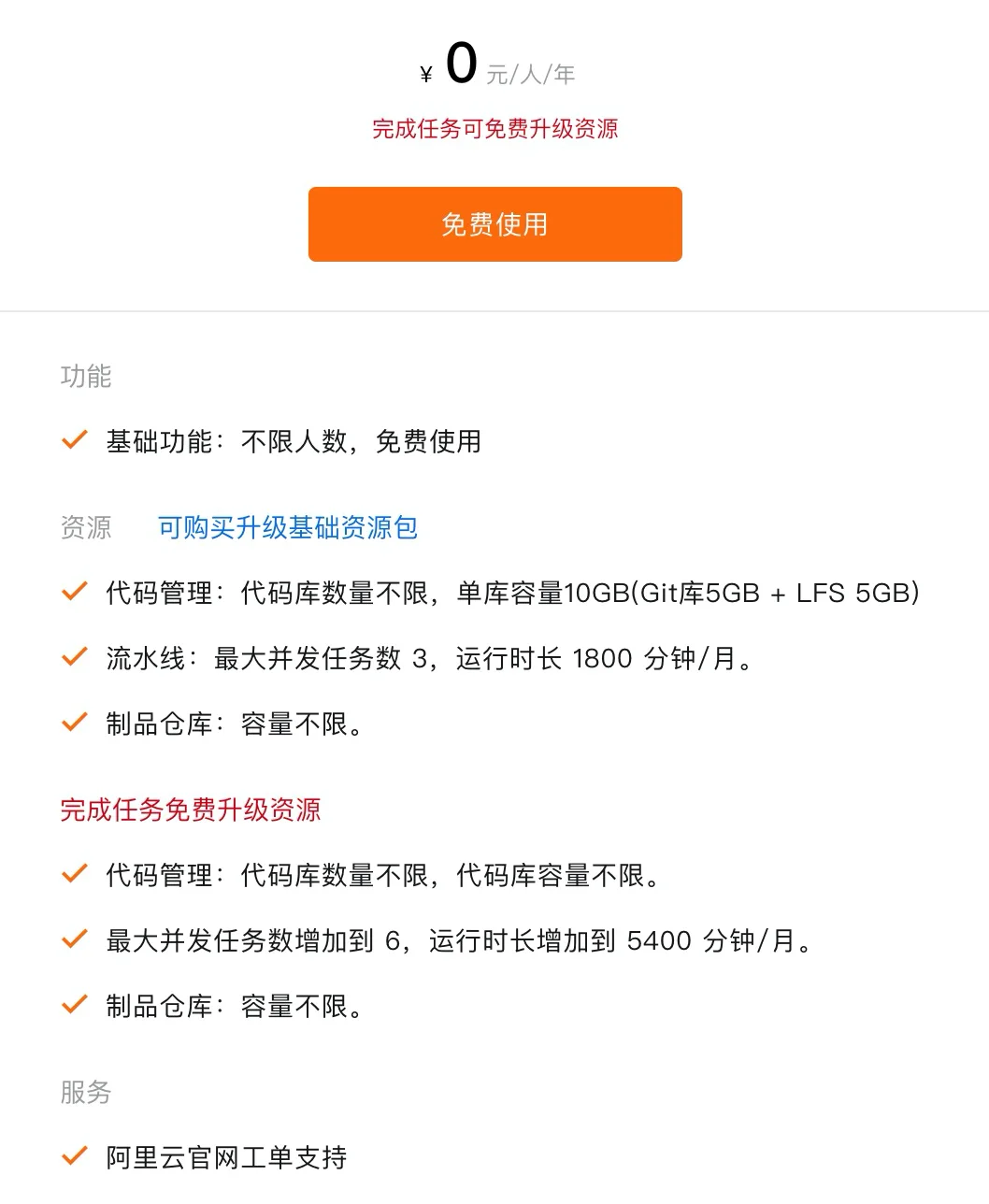 免费:今年6月起刚全面免费,云效DevOps基础版,6款产品不限成员