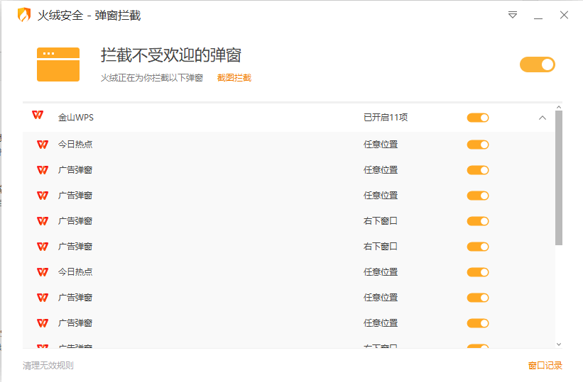 位置:火绒 -> 安全工具 -> 弹窗拦截