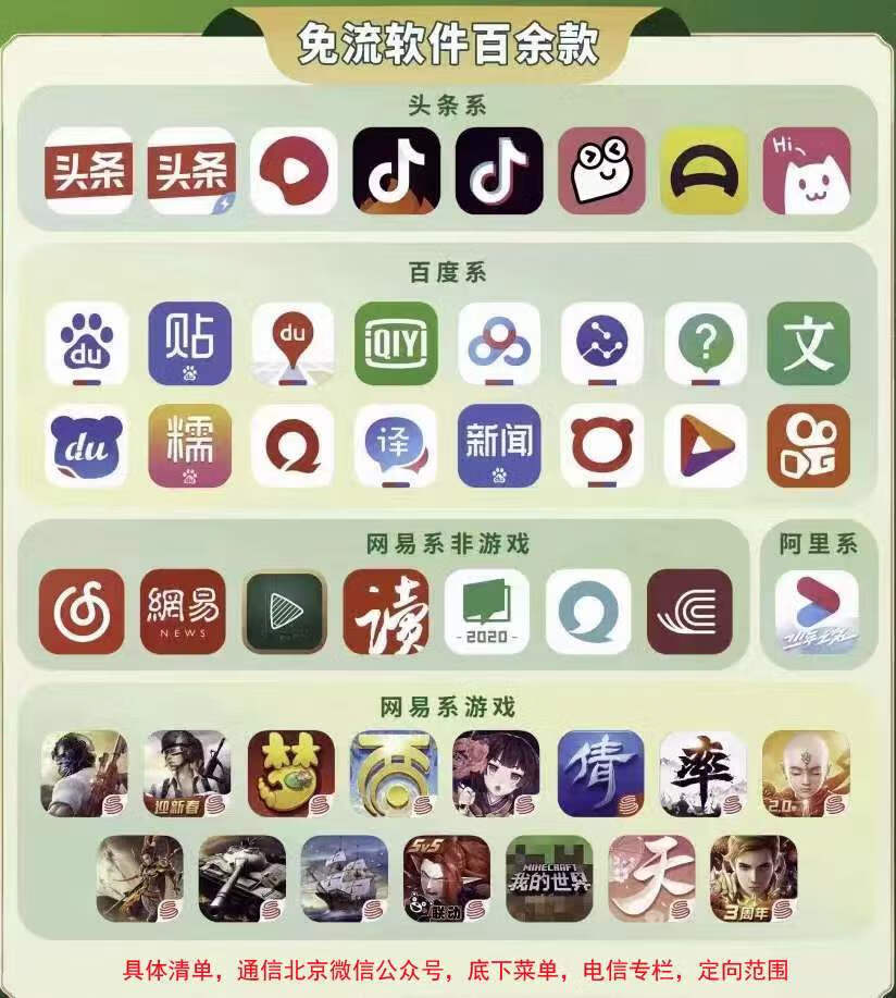 定向流量可用APP:抖音、快手、优酷、爱奇艺、网易云音乐、百度APP等