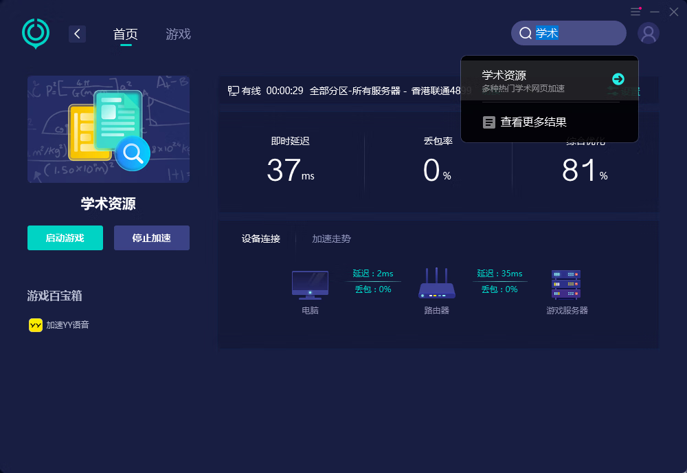 该加速器除了提供各种游戏的加速之外,还提供了:学术资源 加速服务!