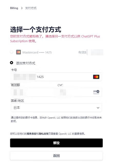 有些同学发现,ChatGPT Plus续费的时候提示:您的支付方式被拒绝了。请选择另一支付方式以供 ChatGPT PlusSubscription 使用