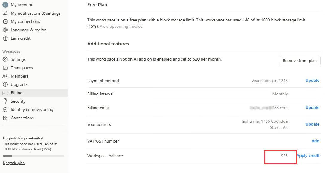 Notion无限叠加信用积分,免费订阅Notion AI和专业版
