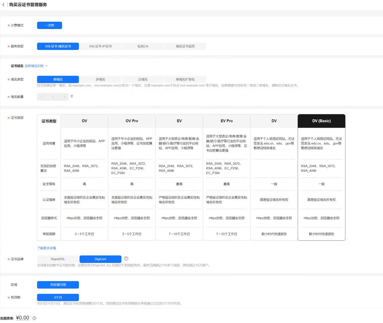 申请地址:https://console.huaweicloud.com/console/?locale=zh-cn#/ccm/scs/certList