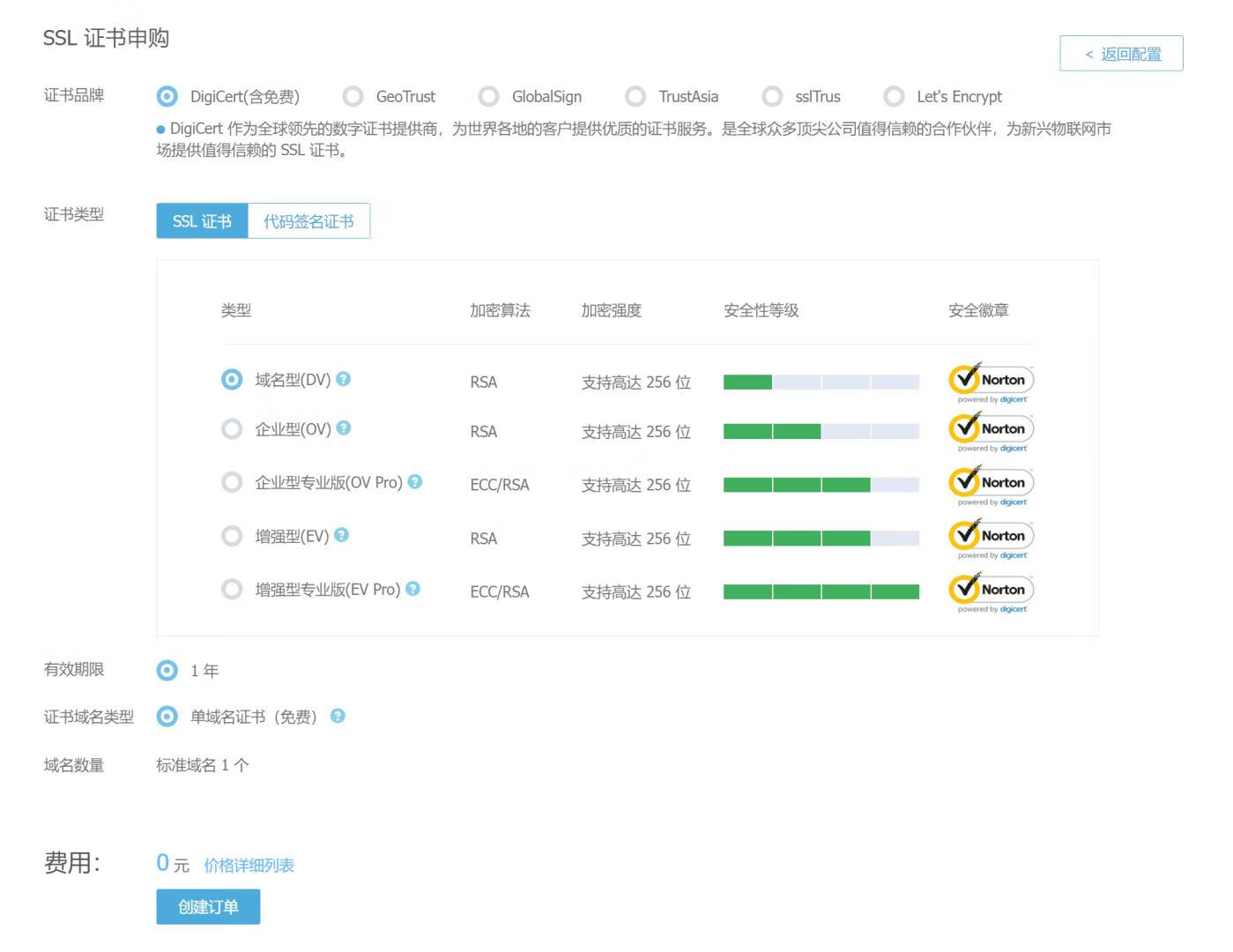 - 新增 3个月有效期SSL证书(不支持通配符)来提供免费的鉴证和签发管理服务;