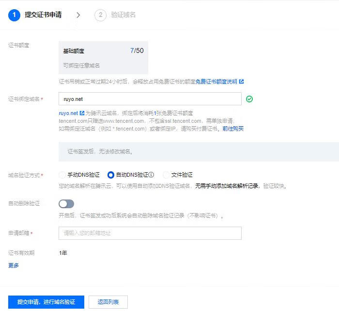 申请地址:https://console.cloud.tencent.com/ssl/dsc/apply