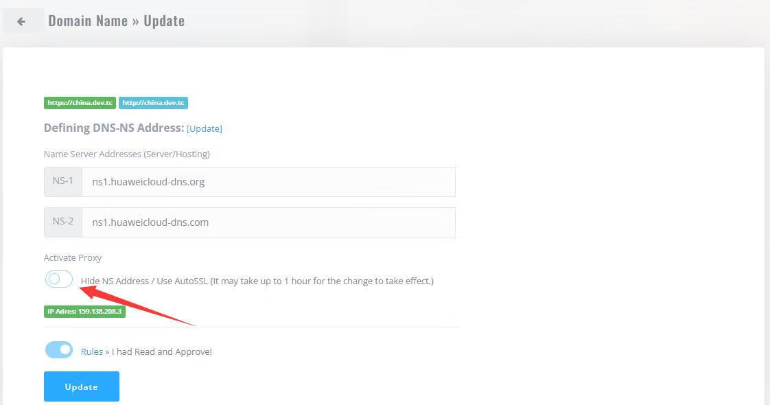 添加NS,最好将【Hide NS Address / Use AutoSSL (It may take up to 1 hour for the change to take effect.)】去掉