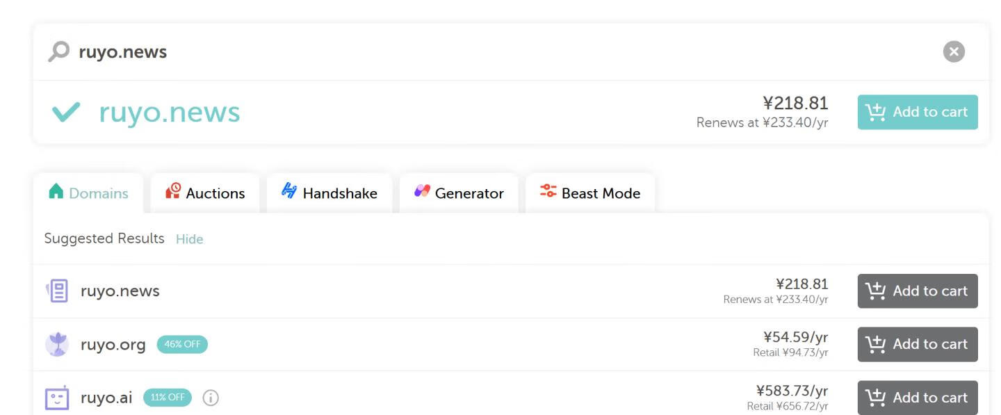 1,访问官网,搜索中意的域名,添加到购物车
