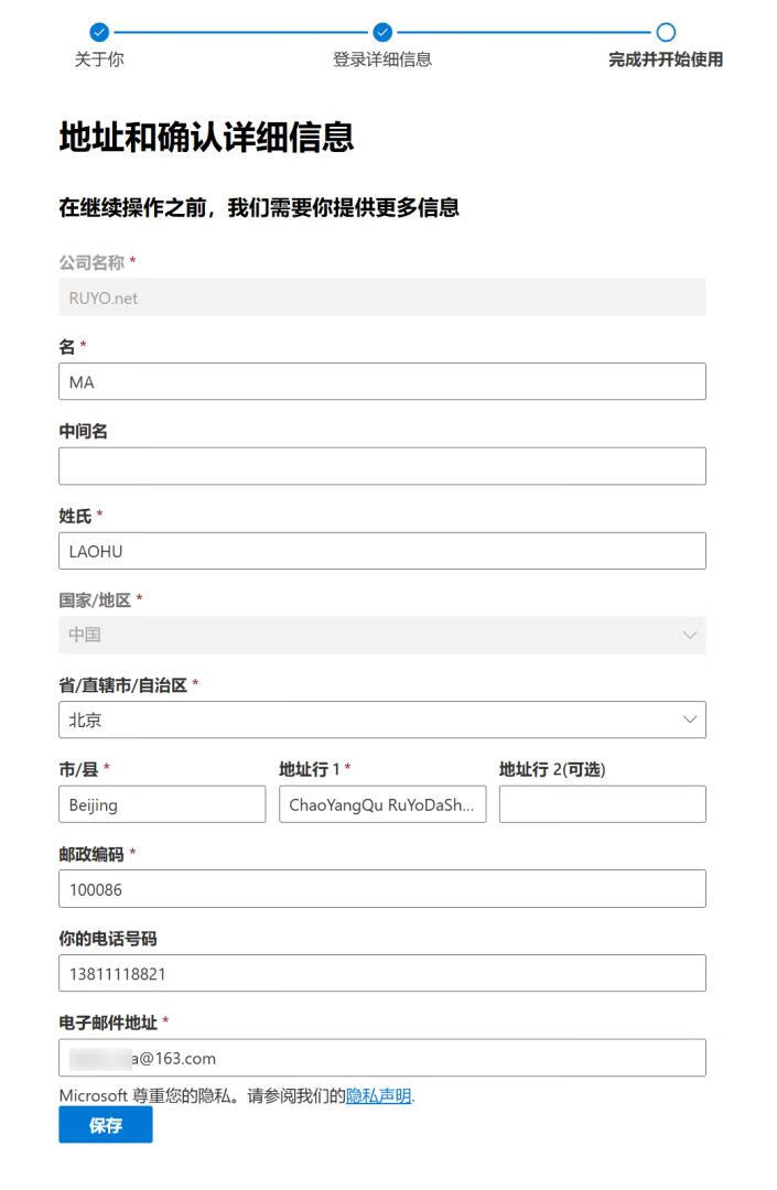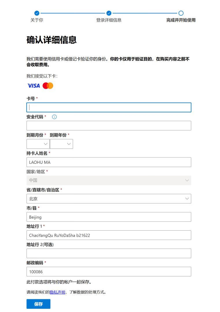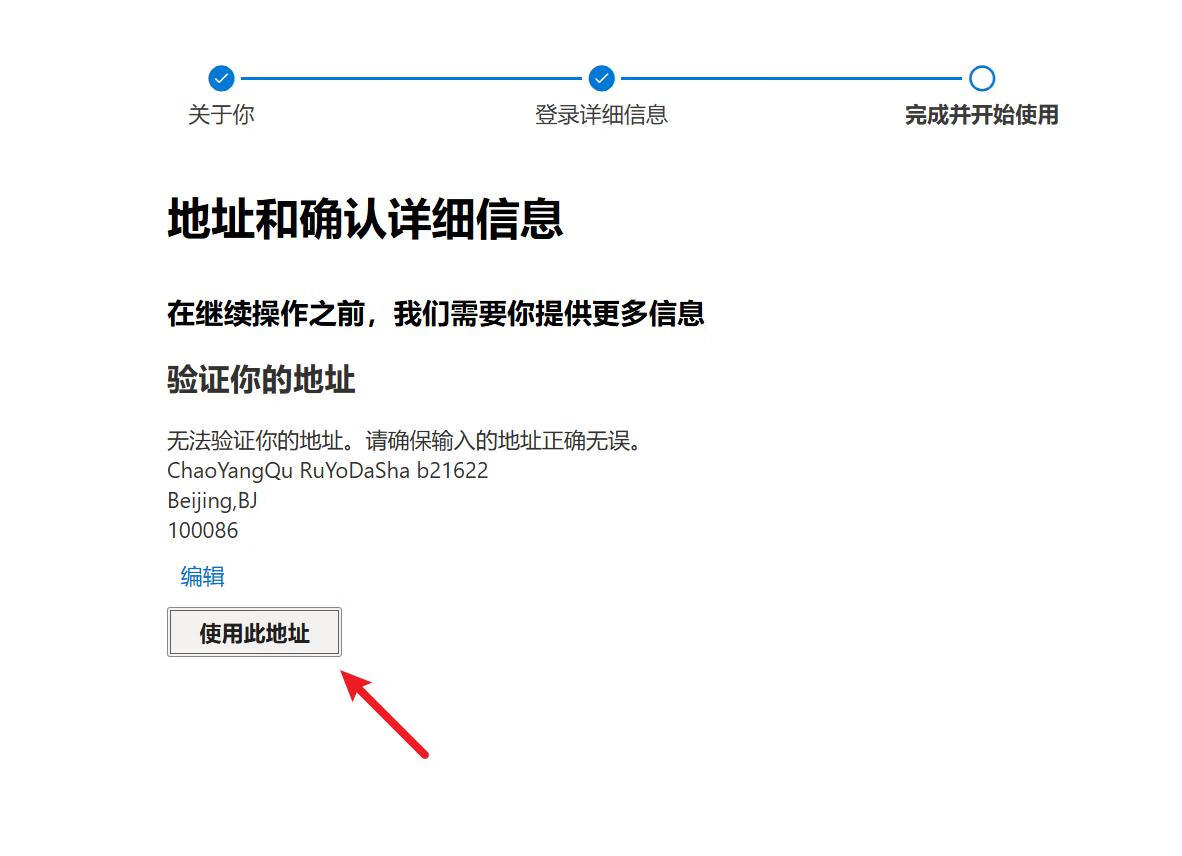 第二步:填写地址信息,随便填写即可。没有太严格的要求!