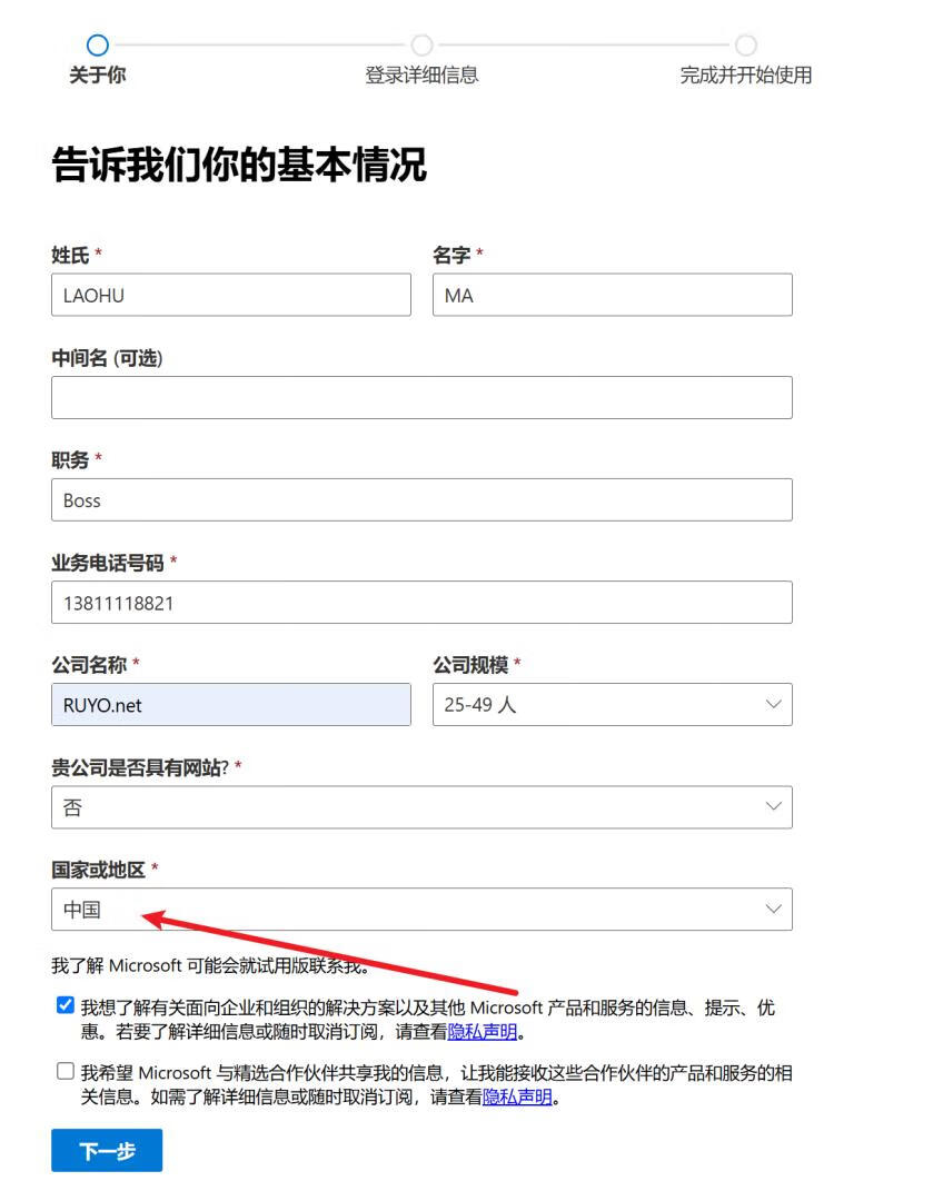第二步:填写用户信息,没有严格的要求。国家或地区选择正确即可!