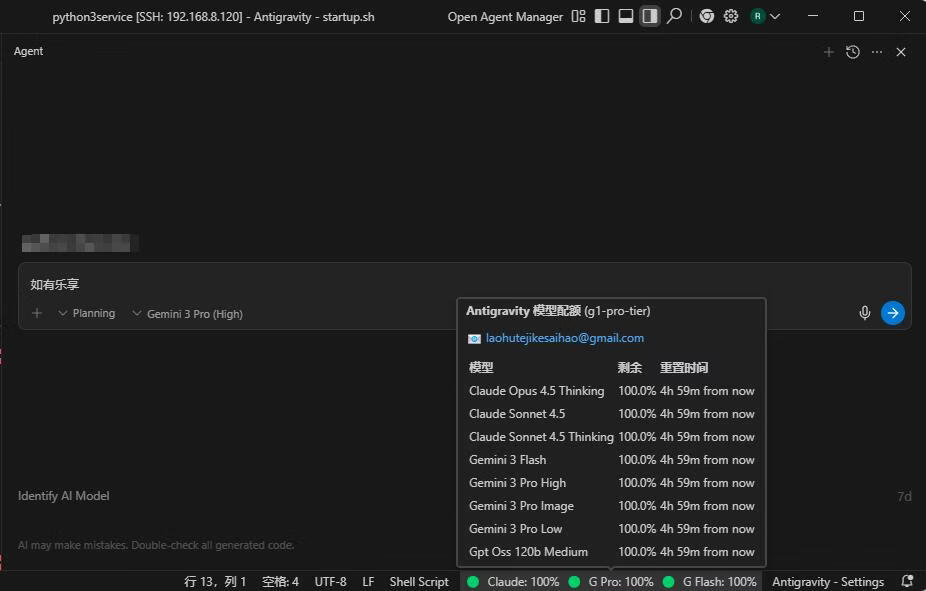 最近主力使用Antigravity开始撸代码了!由于必须开启TUN模型,有时候网络会闪断。切换节点导致SSH中断。确实有点不方便!