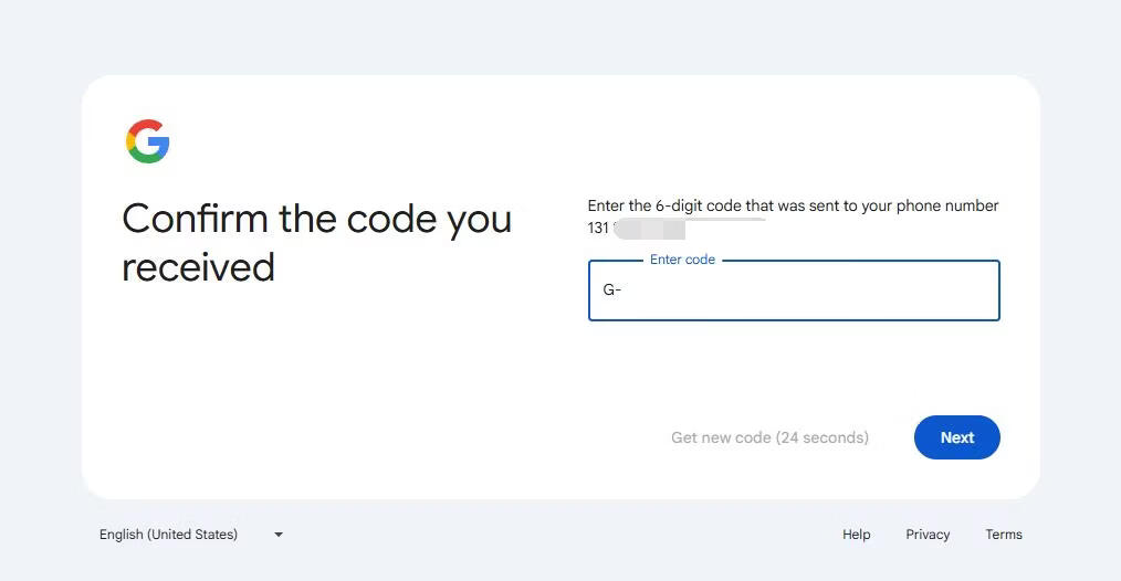 第七步:输入手机号,可输入中国号码 +86 ,再点击下一步。如出现下图能输入验证码,那基本上差不多OK了!