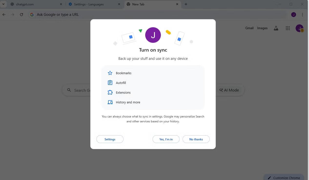 第九步:在Chrome中登陆刚刚注册的账号,开启浏览器信息同步功能