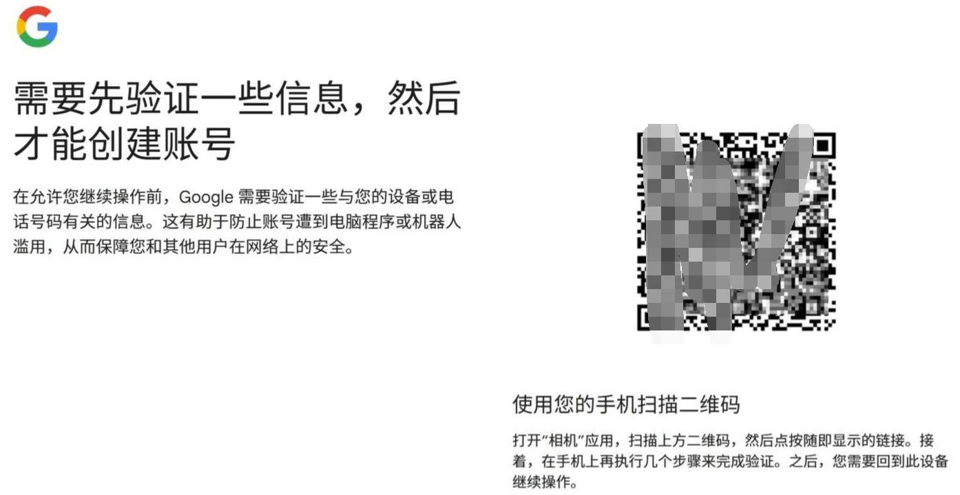 现在注册Google账号更难了。不仅有验证电话,还需要海外号码的手机扫码才能继续!