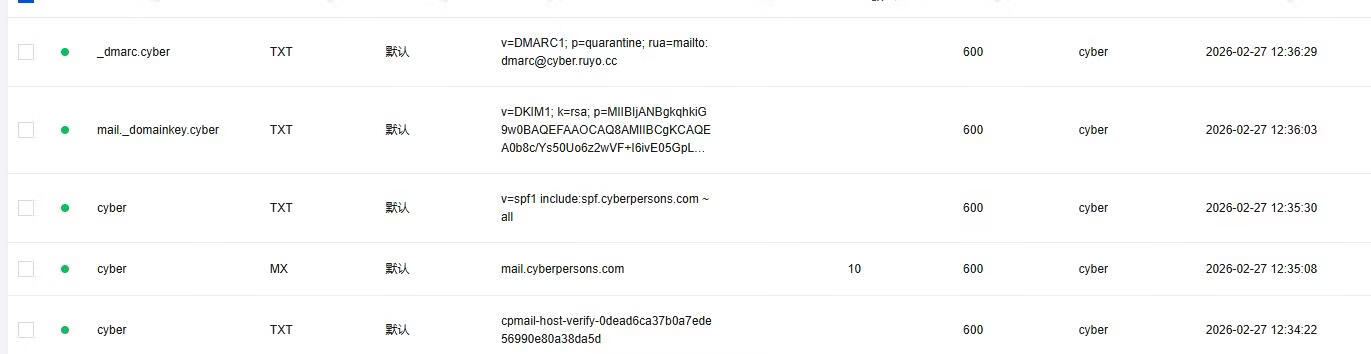 SMTP:mail.cyberpersons.com 端口:587 加密:STARTTLS