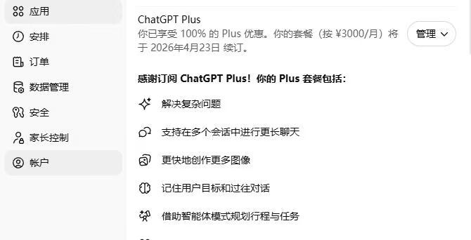 上个月(26年3月)朋友送了一个ChatGPT Plus订阅,有效期一个月!用了半个月了感觉挺稳定,也支持Codex。