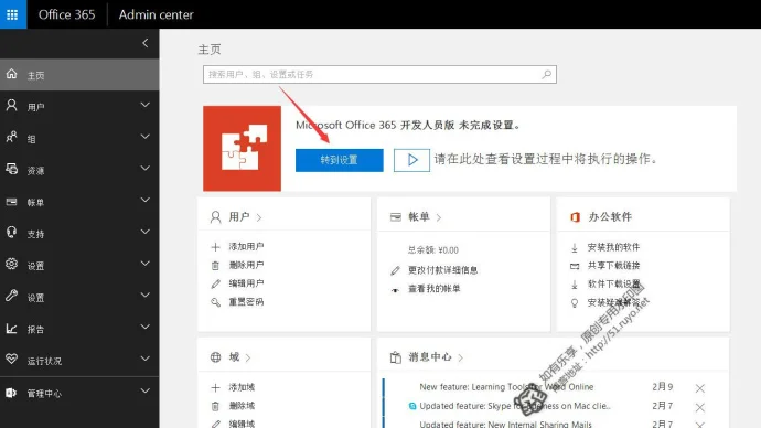 该方法是撸Office365全局管理员,可以开通25个用户。