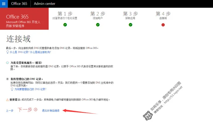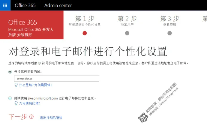 - 在您的新域中设置您的 SharePoint Online 开发人员网站:http://yourdomain.onmicrosoft.com。