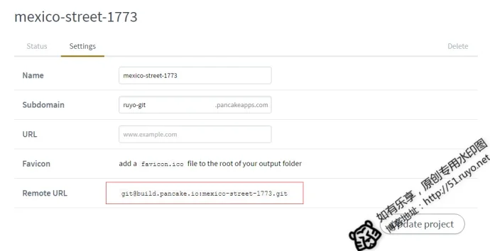 PS : git@build.pancake.io:mexico-street-1773.git 需要替换成你自己的地址,上面提到的 Remote URL
