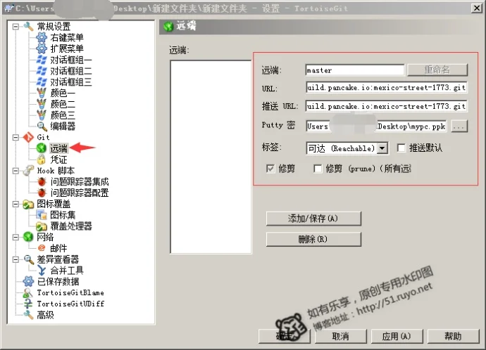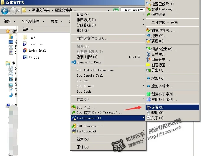 6)打开 TortoiseGit - 设置 我们配置一下远程地址