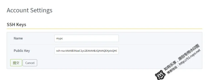 如何生成 SSH KEY 请参考文章: http://51.ruyo.net/p/3420.html#8