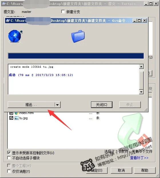 提示成功后,我们将文件提交到pancake 点击推送~~