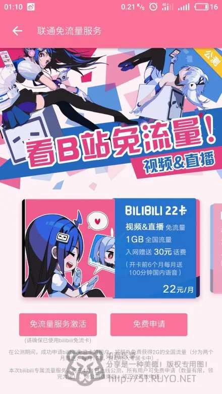 目前仅支持申请新卡,对于联通老用户,后期还会有bilibili流量包。