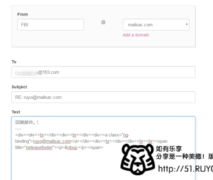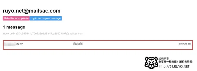 3)最后我们就可以使用域名访问了。创建一个临时邮箱,顺利接收到文件。