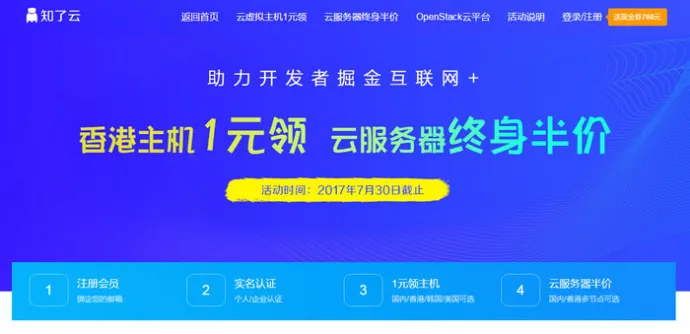现在知了云提供1元/年香港主机。主机免备案,而且是系统自动开通,没有过多门槛,完成实名认证,用支付宝/微信支付1元,就能自动开通1年。整个领取过程只需5分钟!