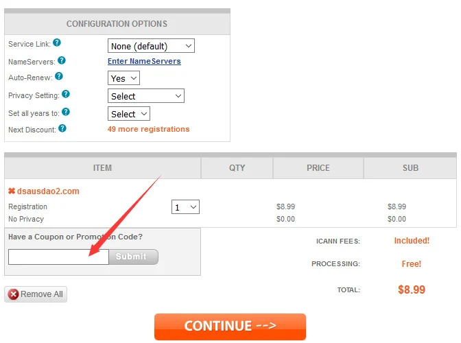 优惠码填写位置见图: