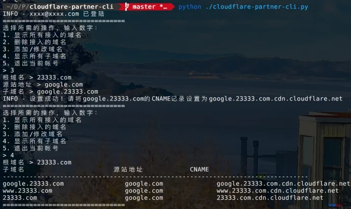 开源地址:https://github.com/fffonion/cloudflare-partner-cli
