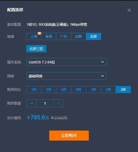 最低配置三年只要 759元~~~ 可惜只有1M带宽~~ 但是香港也是795哦~~~