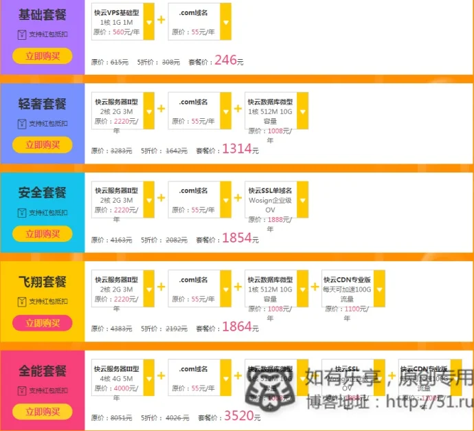 个人看到一个亮点是:快云VPS普及型 2核CPU/ 2G内存 / 4M带宽 + 一年com域名 只要 422元!