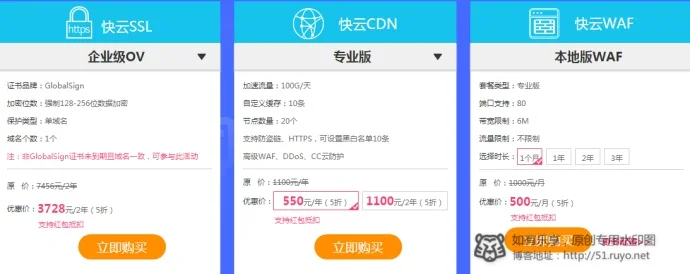 3、凡实名通过实名认证终端用户,可参与快云全线产品(包括:快云VPS、快云服务器、快云数据库、快云SSL GlobalSign品牌证书、快云CDN包年套餐、快云WAF本地版、共 享云盘)年付产品5折优惠,不限购数量,可叠加红包使用;