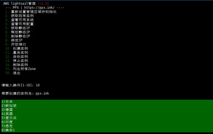 该脚本提供的功能基本上通过Lightsail Web面板都能实现!脚本的目的就是为了让大家了解 Amazon API的一些操作!