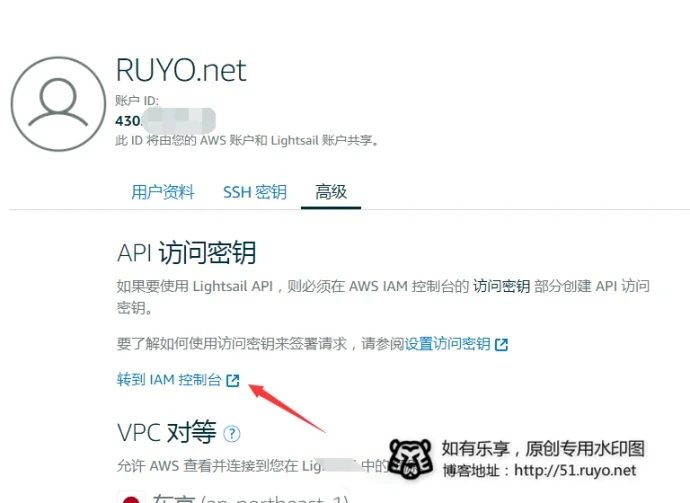 面板地址:https://lightsail.aws.amazon.com/ls/webapp/account/advanced
