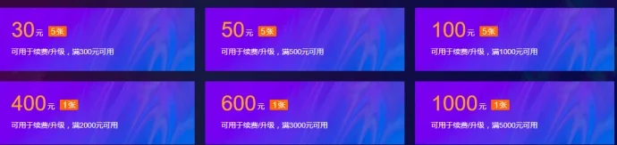 4、支付说明:本次活动中预付费产品,均不支持代金券购买;其他后付费产品的优惠券使用规则见各产品优惠券说明;