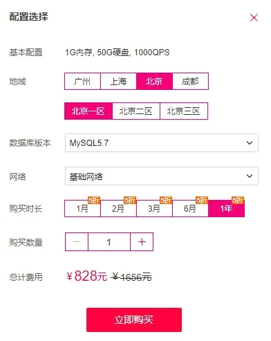 1G内存/50G硬盘/1000QPS/3年只要828元!!