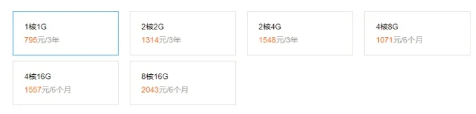 最低配置:1核CPU / 1G内存 / 1M带宽 / 50G云硬盘 / 795元3年